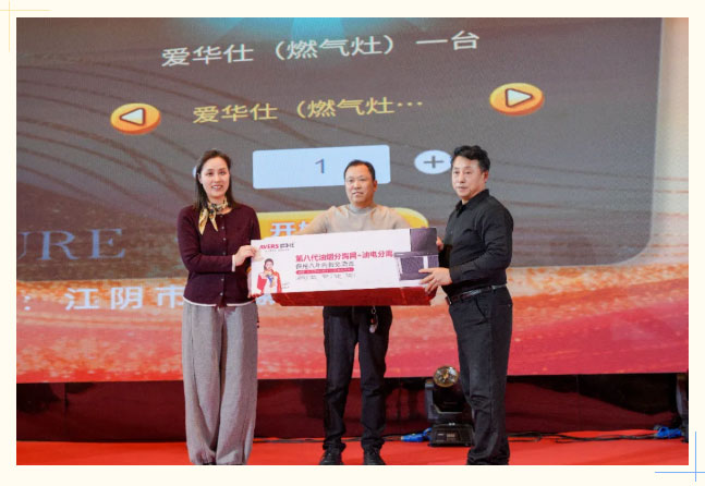 会员单位《鑫康环保科技》的汤纪远总经理抽取2名嘉宾,分别送出爱华仕变频油烟机、爱华仕燃气灶各1台;