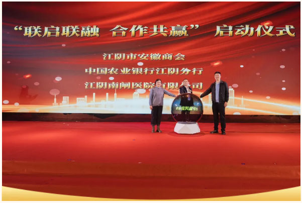 接着,江阴市安徽商会与中国农业银行江阴支行、江阴市南闸医院有限公司共同开启“联启联融,合作共赢”启动仪式,这一举措无疑为商会未来发展注入新动力。