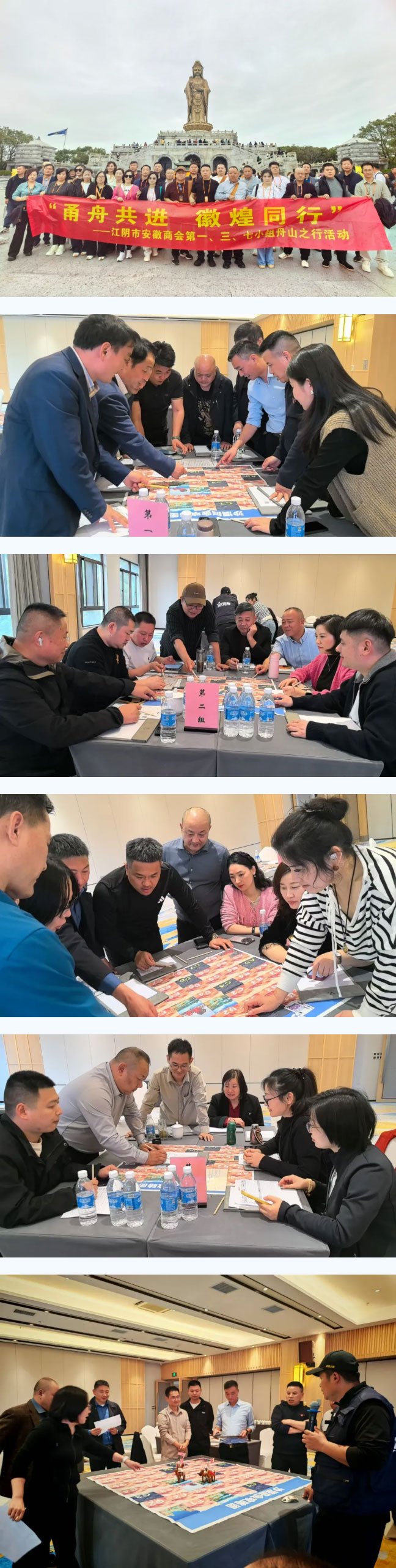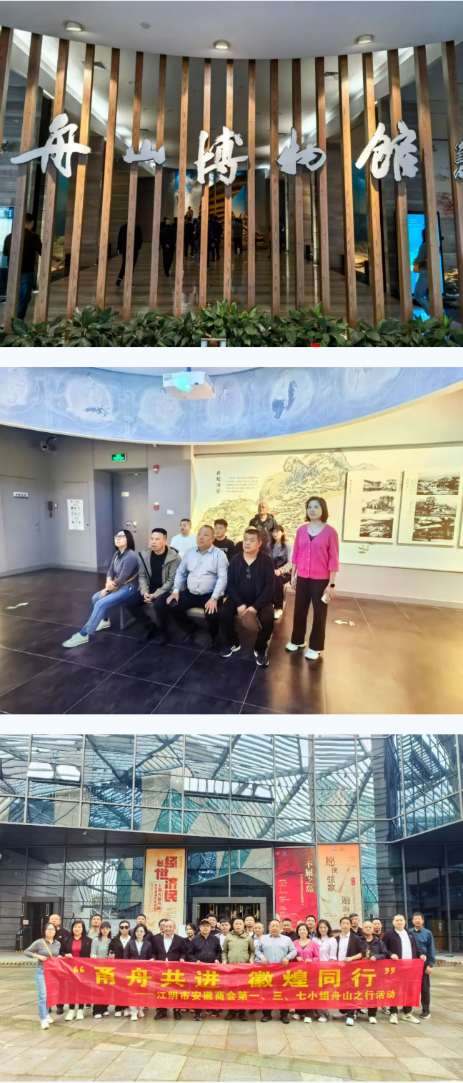 11月5日至7日,江阴市安徽商会第一、三、七小组在组长们:监事长张克胜;副会长庞辉;副会长司守亮;党支部书记、副会长古珺;副会长钱宝家的精心组织安排下,携手带队各自小组成员齐聚浙江省舟山市,开展为期三天的“甬舟共进,徽煌同行”主题活动,以“掘金”、“修行”、“寻根”为主线,在协作博弈、心灵沉淀与文化探寻中凝聚徽商力量。值班会长马玉龙、秘书处受邀参加。