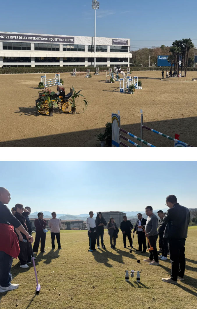 在专业教练指导下,组员们手握球杆、瞄准目标,在草坪上体验击球、推进、过门的趣味流程,分组竞赛的互动中,欢声笑语与团队协作的默契交织。这场“大众高尔夫”不仅让大家释放了工作压力,更让组员们直观感受到广德以赛事为媒、推动“体育+文旅+康养”融合的发展思路——正如木球滚动的轨迹,串联起城市的生态优势与产业活力。
