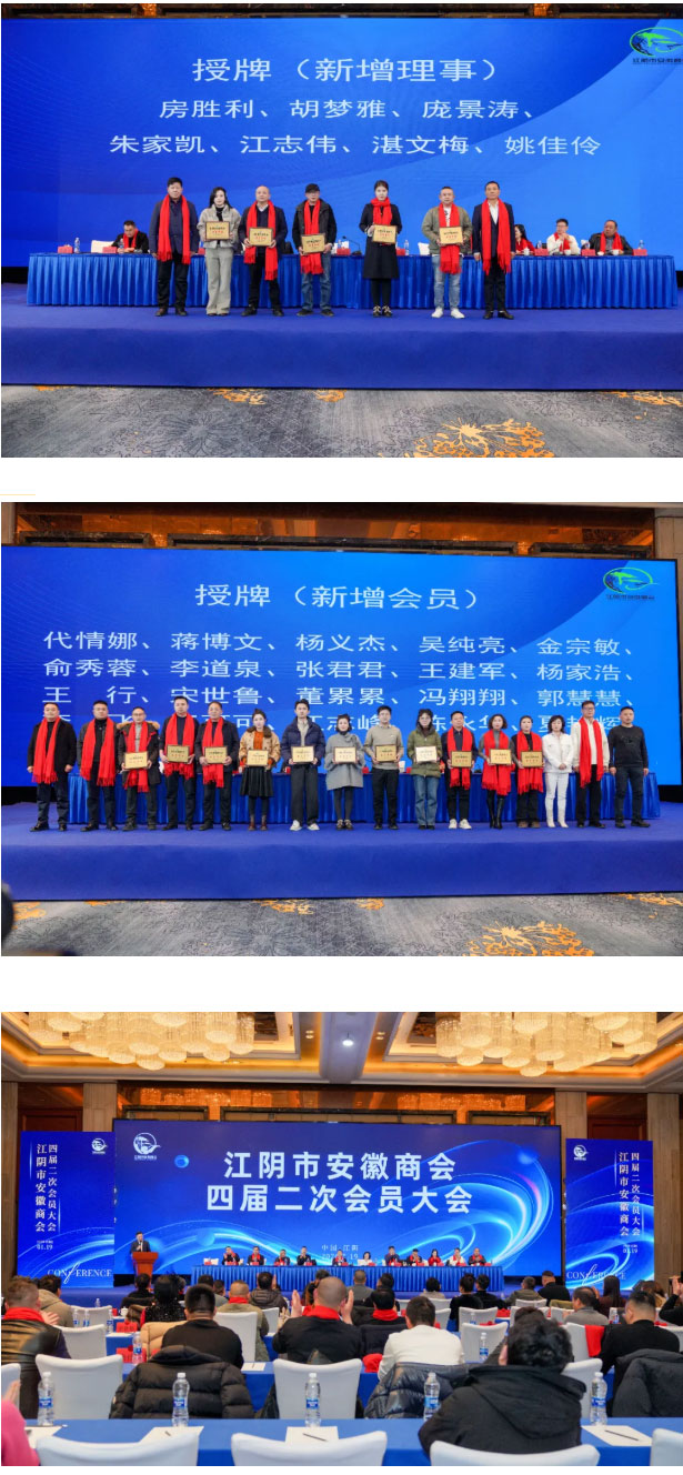 春潮涌动启新程,同心聚力谋发展。1月19日,我们齐聚江阴黄嘉喜来登酒店宴会厅,隆重召开江阴市安徽商会四届二次理事会暨四届二次会员大会。