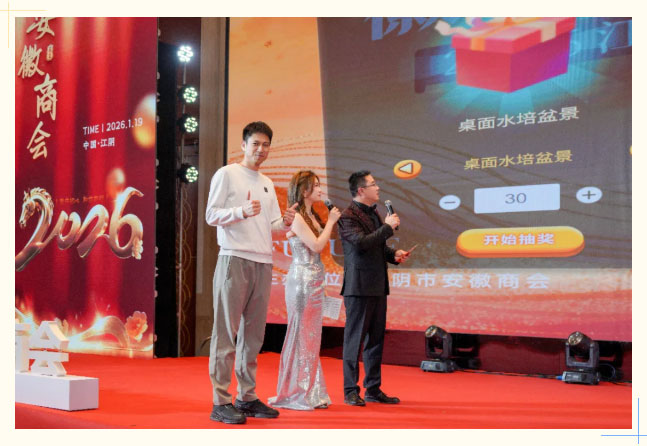 精彩的表演间隙,多轮抽奖环节轮番上演,丰厚的礼品让现场气氛持续升温。第一轮抽奖中,会员单位《朴元口腔》的申文萱总经理为30位幸运嘉宾送上“微笑守护卡”,副会长单位《信实环境》的庞景涛总经理则抽取30名幸运儿,送出精心准备的桌面水培盆景,为新春增添一抹绿意生机。
