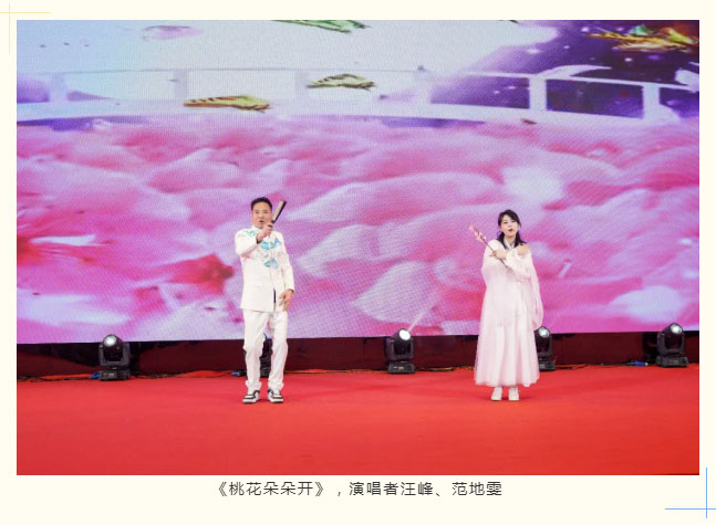 王瑞、贾雪萍献上歌曲《策马奔腾》,豪迈演唱,唱出了徽商勇往直前的创业豪情。
