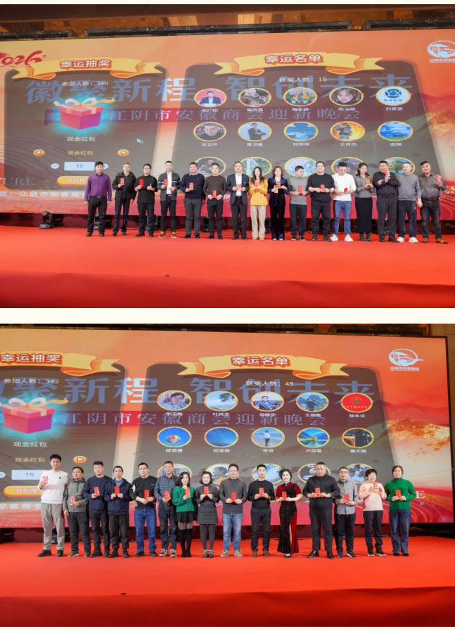 此次新年晚会的圆满举行,既是对过去一年商会发展成果的总结与回顾,更是对新一年砥砺前行的展望与期盼。2026年,江阴市安徽商会将继续秉持“徽聚新程 智创未来”的理念,凝聚徽商力量、搭建合作桥梁、赋能企业发展,与全体会员单位携手并肩,在新的征程上策马扬鞭,共创更加辉煌的明天!