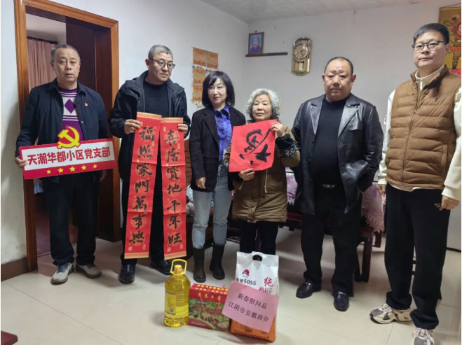 每到一户,慰问组都与困难群众亲切交流,详细询问他们的身体状况、家庭收支、生活难题及年货筹备情况,耐心倾听他们的心声与诉求。“快过年了,我们代表江阴市安徽商会来看望您,祝您新春快乐、身体健康!”值班会长、党支部书记古珺和值班会长钱宝家一边为群众递上慰问物资,一边送上真挚的新春祝福,鼓励他们保持乐观向上的生活态度,勇敢面对困难,相信在党和政府的关怀及社会各界的帮助下,日子一定会越过越红火。